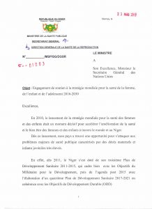Niger commits to increase health spending from 8.1% to 15% by 2015, with free care for maternal and child heath, including obstetric complications management and family planning. Niger will train 1000 providers on handling adolescent reproductive health issues, and to address domestic violence and female genital mutilation (FGM). Niger will reduce the fertility rate from 3.3% to 2.5% through training 1500 providers of family planning, and creating 2120 new contraception distribution sites. Niger will further equip 2700 health centres to support reproductive health and HIV/AIDS education, and ensure that at least 60% of births are attended by a skilled professional. Niger will additionally introduce new policies that support the health of women and children, including legislation to make the legal age of marriage 18 years and to improve female literacy from 28.9% in 2002 to 88% in 2013.